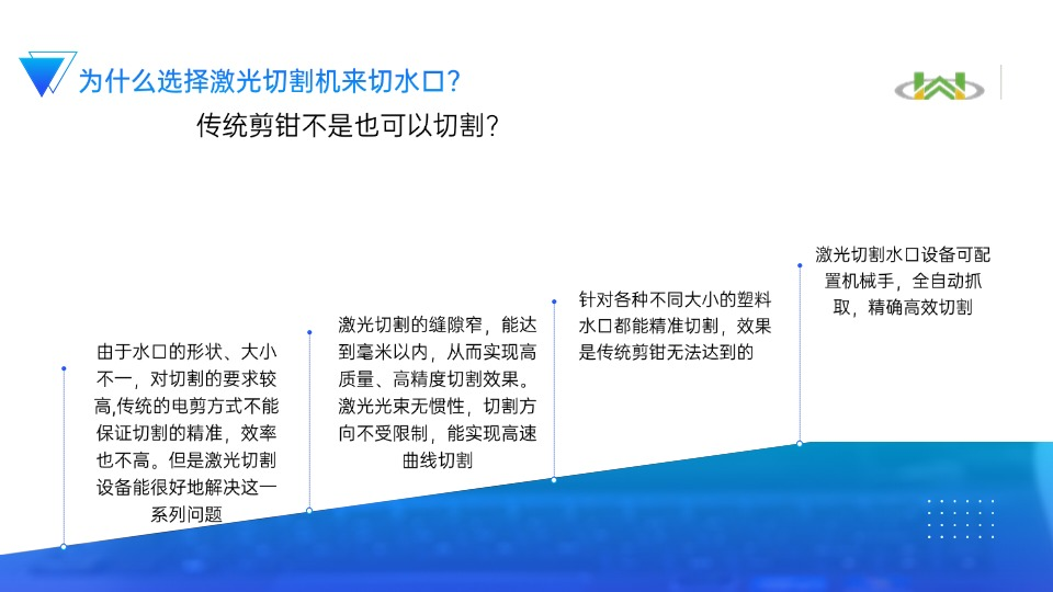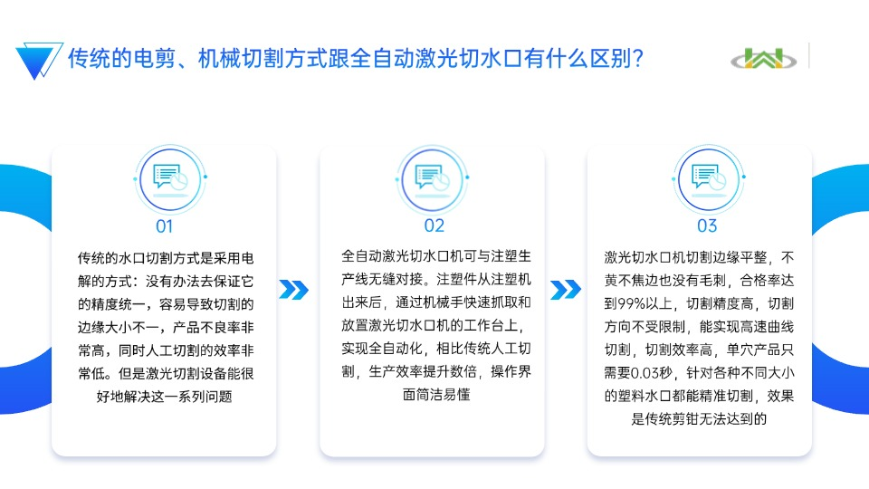 主要适用于塑料水口,塑胶水口的切割,用激光切割机切割水口,激光应用相比传统工艺有下面优势: