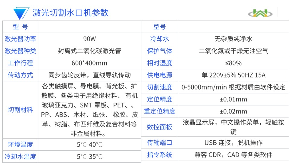 本机采用进口射频CO2激光器,性能稳定,光斑质量高,使用寿命近20000小时。传动部分采用进口精密导轨和高速步进电机,确保加工精度,噪音低,寿命长。一体化设计的框架结构,人性化的操作界面,确保工作稳定和可靠。激光功率及雕刻切割速度变化随意控制功能,是电子行业非金属激光切割的最佳选择。
